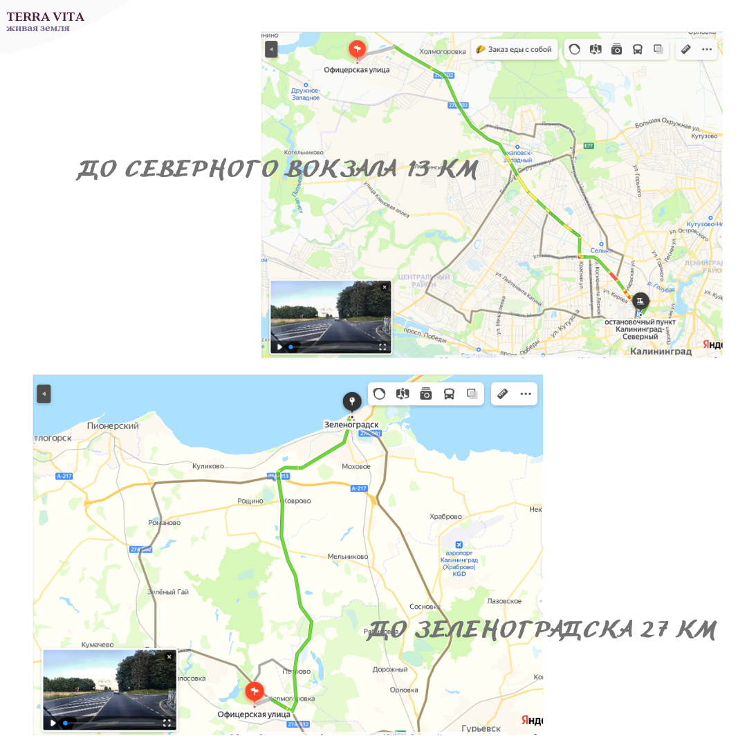 - в 1 км от трассы 27А-03 2 Калининград-Зеленоградск (направление на Зеленоградск, Светлогорск, Янтарный