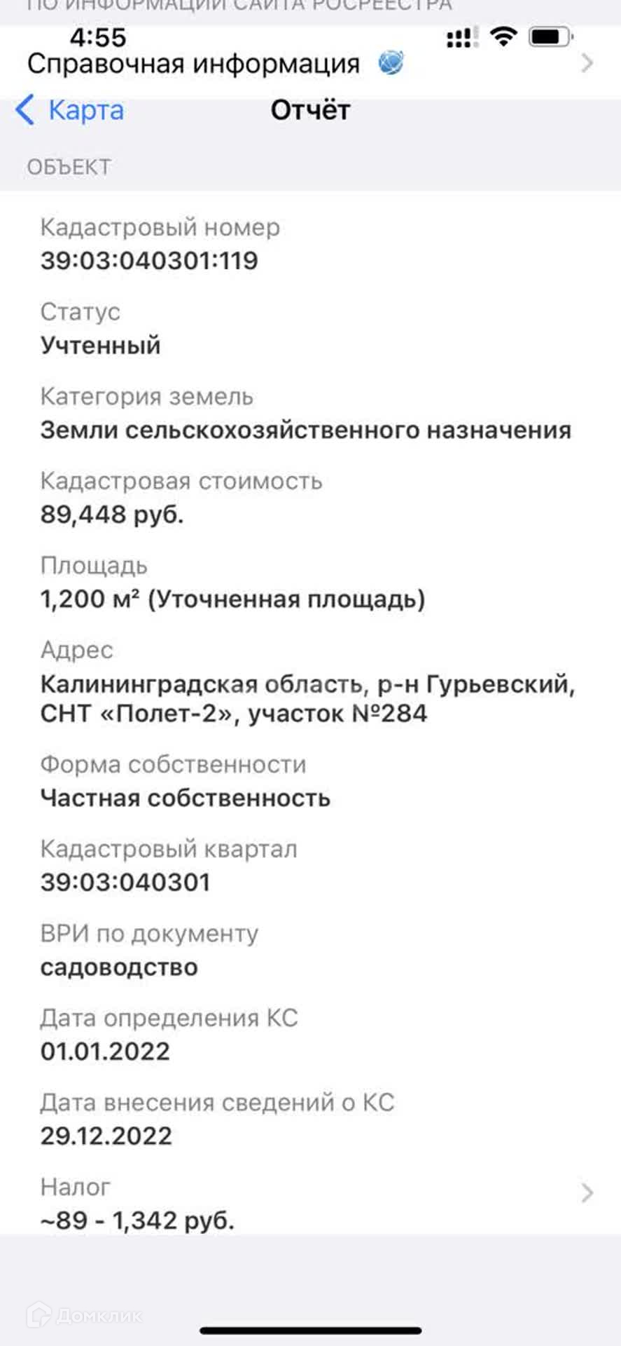 Стоимость недвижимости: