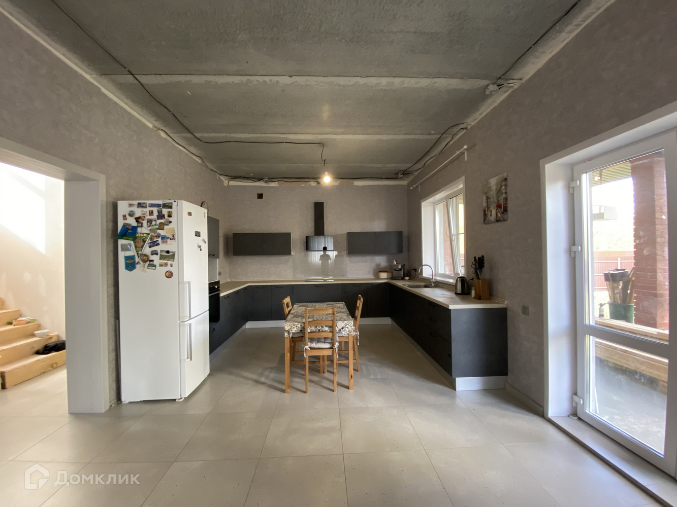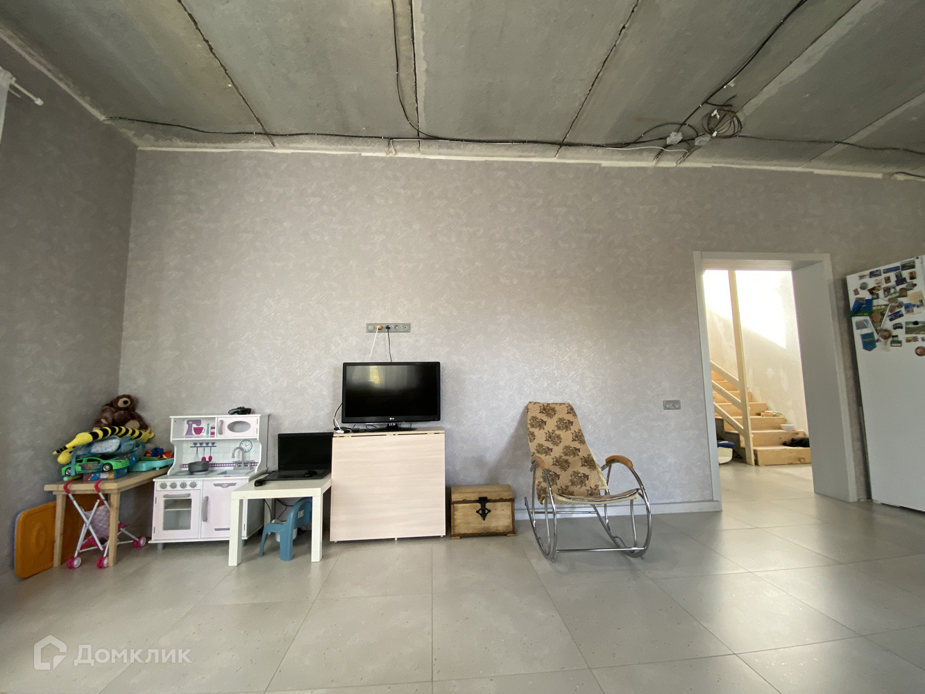 - Стяжка на 1-м этаже заливная, ламинат.