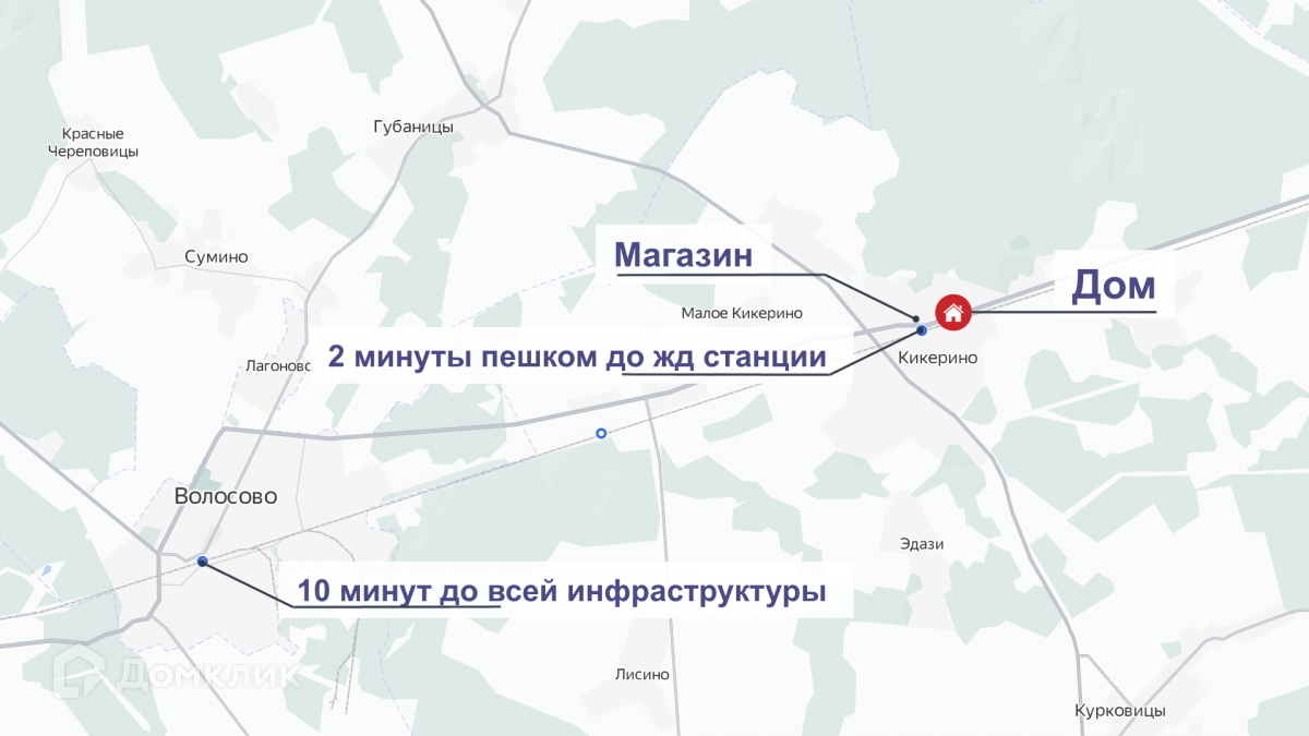 - В 10 минутах находится город Волосово со всей необходимой инфраструктурой. Сетевые магазины, заправки, детские сады, школы, поликлиники, СТО.