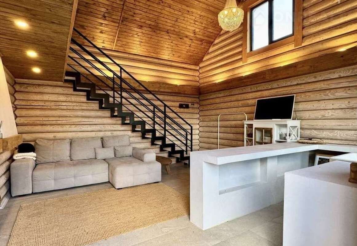 На первом этаже расположился холл, гостевой сан.узел, кухня с системой хранения, просторный зал с обеденной зоной с выходом на террасу с панорамным остеклением - отличное место для отдыха в любое время года.