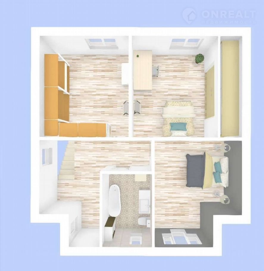 На втором этаже расположены две спальные комнаты, совмещенный сан.узел с ванной и гардеробная комната(которую можно переделать в третью спальню).