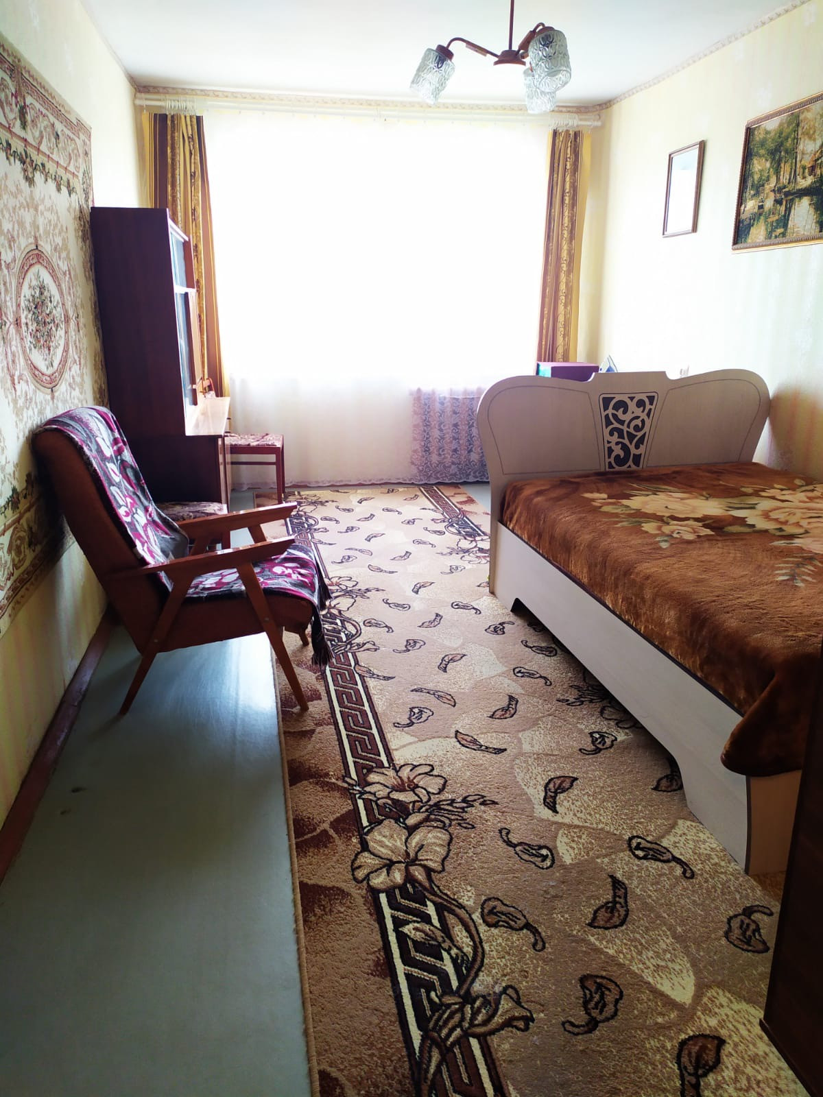 Светлая трёхкомнатная квартиpа,в посёлке городского типа.Комнаты изолированные,правильной формы.