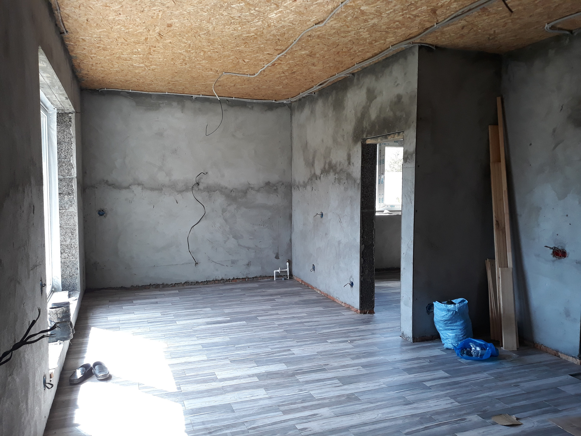 Стены отштукатурены  снаружи и внутри, внутренние стены  под оклейку обоями.