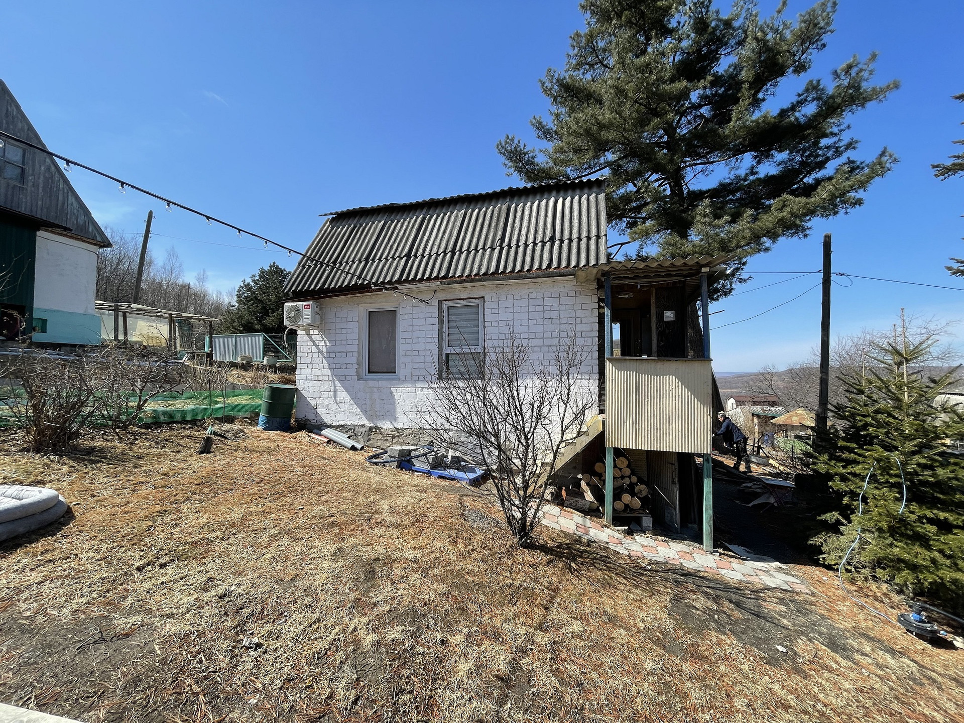 Печь-камин чугунная под уголь и дрова, жарит отлично, в минус 30 за бортом, в доме тепло. Дом тепло держит, кладка в два кирпича с воздушным зазором между ними. Зимой катаемся на тюбингах. Новый кондиционер. Отдельная площадка под бассейн 11 кубов на плитном фундаменте (бассейн также остаётся). Большая парковка на 4 авто. Место тихое, дружные соседи. Электричество круглый год. Удачное расположение участка, спрятан за сопкой-ветров нет. Чем славятся эти места, что здесь тихо, отдыхаешь от шумного города.