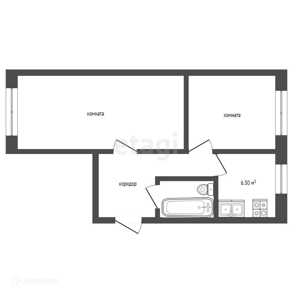 2-комнатная квартира, 44.4 м2, этаж 1 / 3, на продажу в поселке Кипелово, Железнодорожная улица, 4