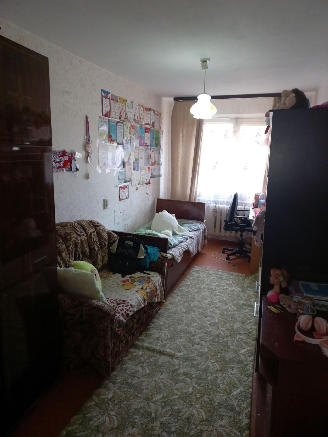 Квартира не угловая, балкон застеклен пластиковыми стеклопакетами,  в детской комнате также установлено пластиковое окно.
