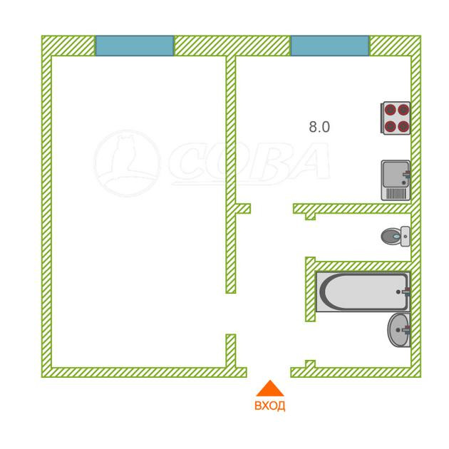 Общая площадь 40 м2