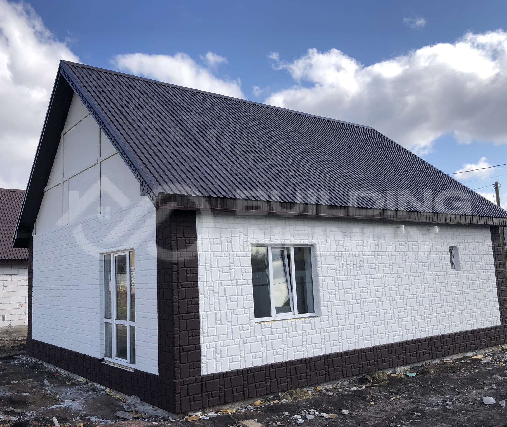 Дом на главном фото с утепленным чистовым фасадом и отмосткой 5490 т.р.