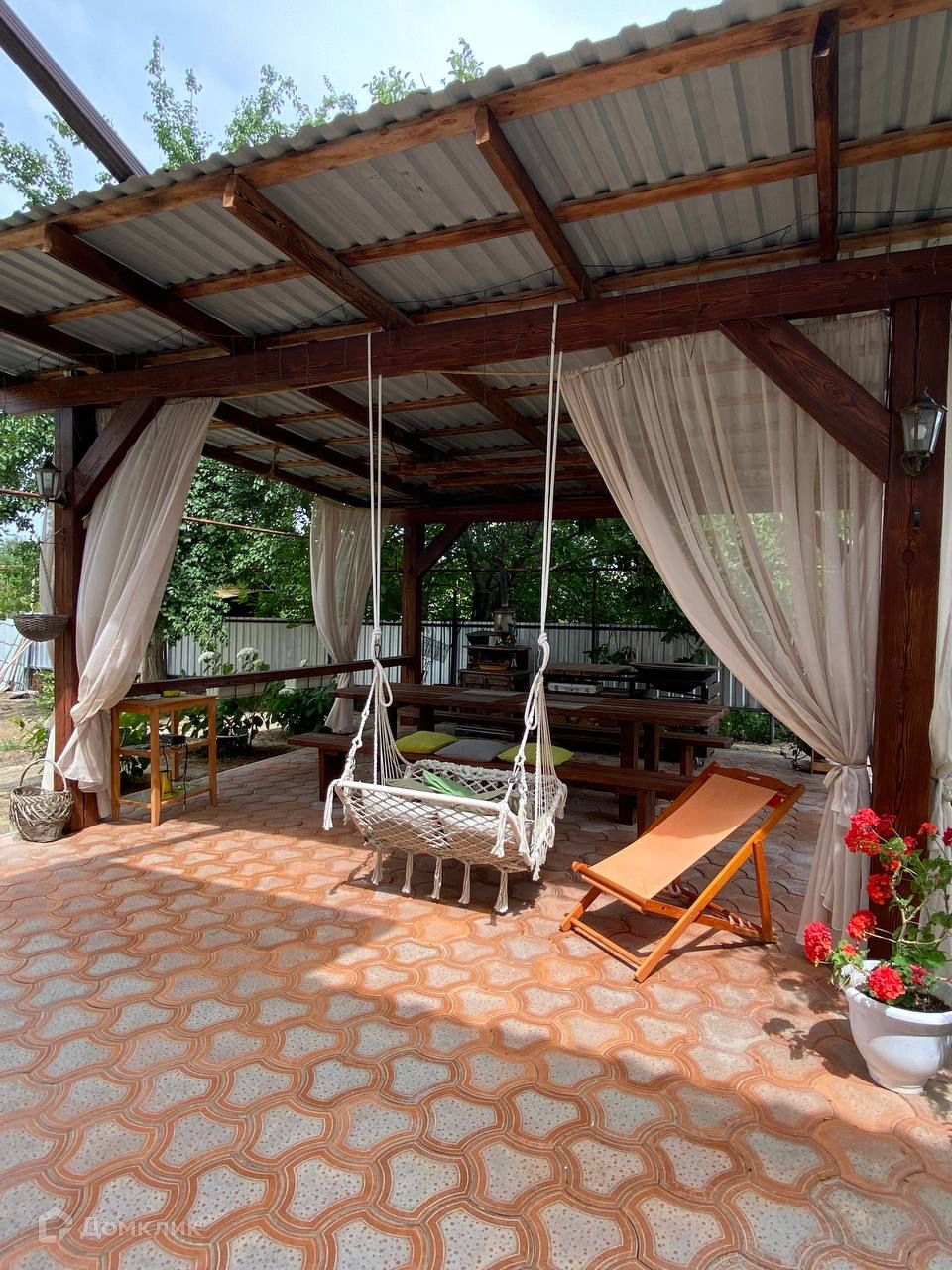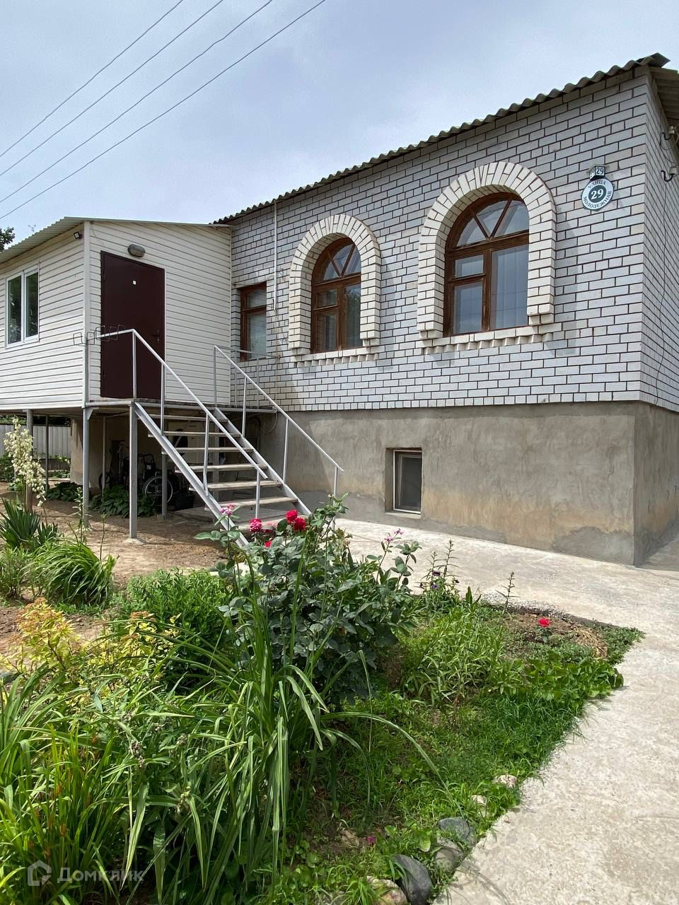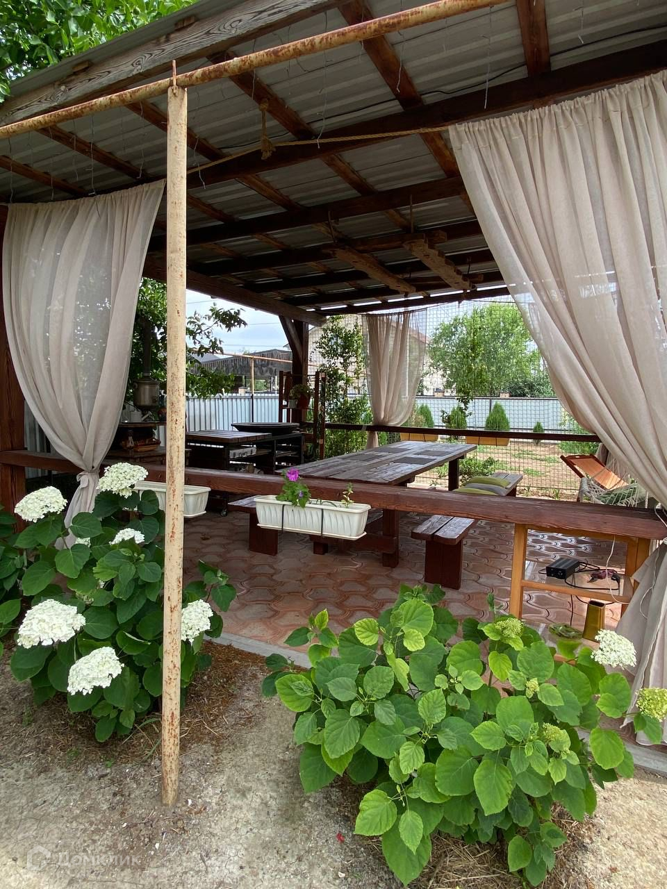 Придомовая территория благоустроена плодовыми деревьями и кустарниками, предусмотрено машиноместо во дворе. На территории дома расположена беседка с зоной барбекю и бассейн, а также хоз.постройки для эко фермы. Двор ухожен: высажены декоративные растения и выложена дорожка. Участок по периметру огорожен забором. Асфальтированные подъездные пути.