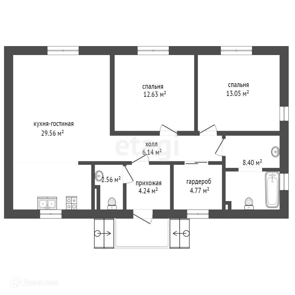 2. две спальные комнаты + кухня-гостиная