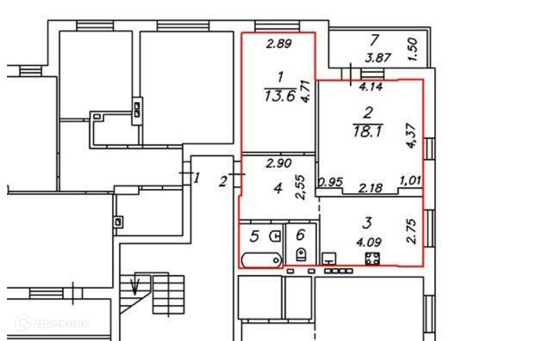 Общая площадь 55.3 м2