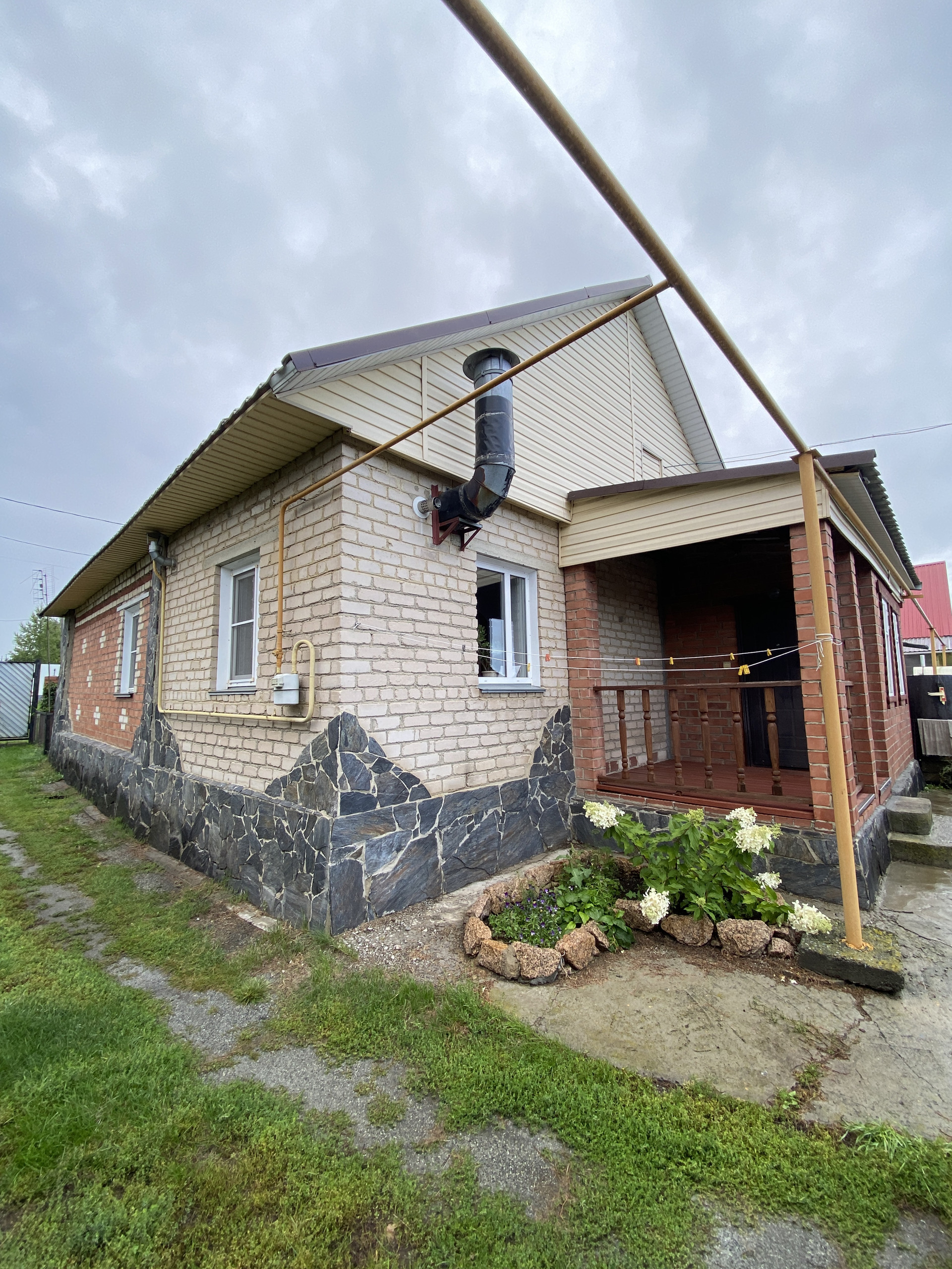Дом общей площадью 71 кв.м., одноэтажный с возможностью размещения второго этажа в мансарде. Материал стен брус, обложен кирпичом, крыша металлочерепица. В доме три жилые комнаты, кухня, прихожая, с/у и ванная комната. Пластиковые стеклопакеты в каждой комнате, отделка стен - дерево, обои.