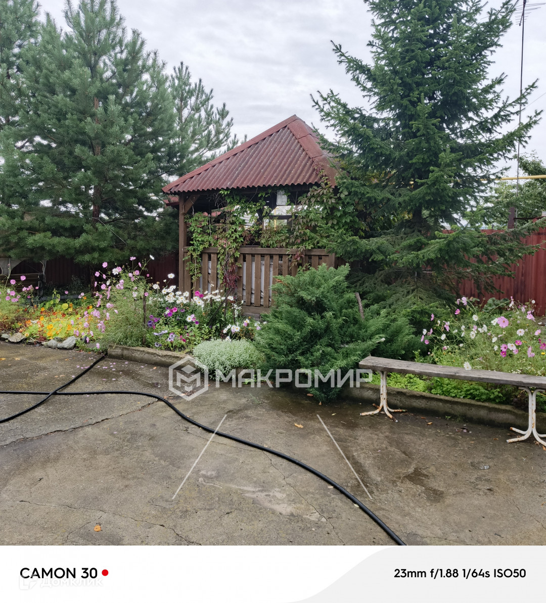 На территории участка имеется уютная беседка, фонтан, баня.