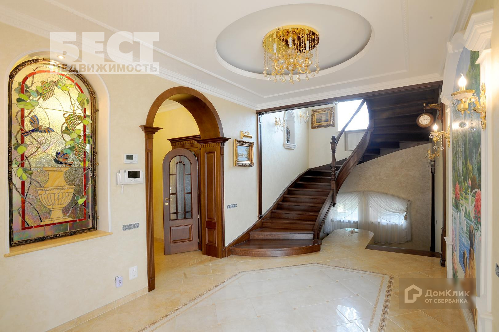 Управление на каждом этаже , в бане, беседке + пульты карманные. Стены дома в 2,5 красного печного кирпича , Подоконники внутри мрамор, снаружи гранит. Видеонаблюдение 21 наружных камер и 3 внутри дома, сигнализация пожарно-охранная во всех помещениях.