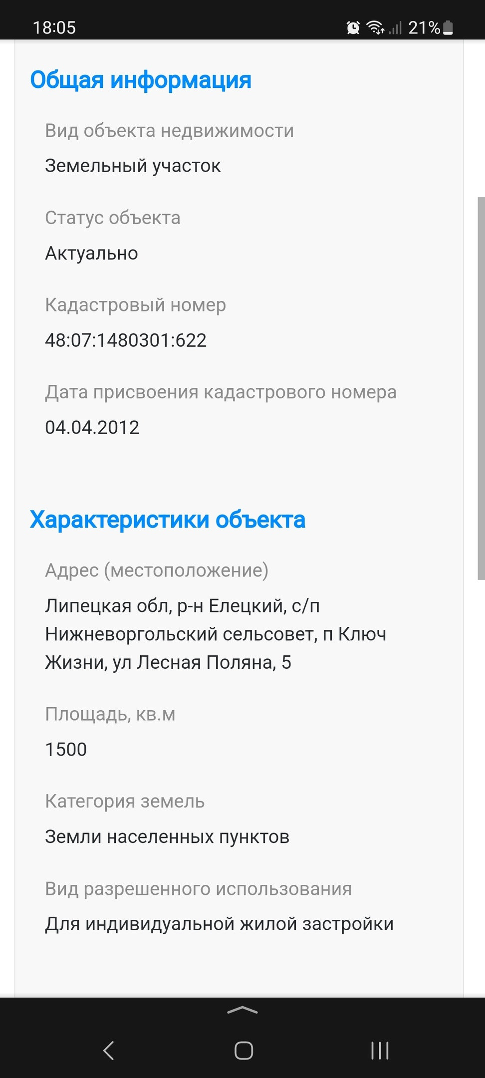Площадь участка 15 сот.
