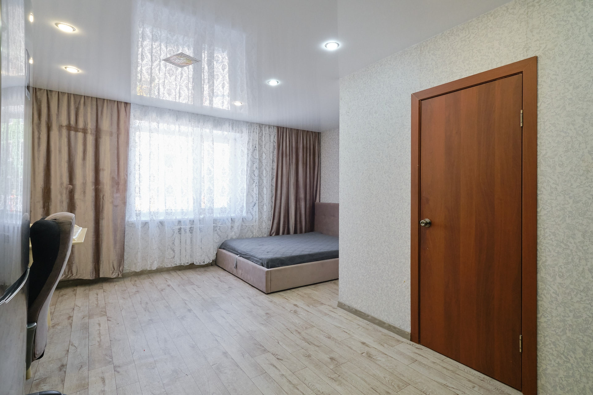 Отличный вариант для тех, кто очень любит природу, при этом хочет жить в квартире. Квартира светлая, уютная. На стенах обои, на полу линолеум. Натяжные потолки. В квартире остаётся встроенный гардероб, нижняя часть кухонного гарнитура со встроенной варочной панелью, также раковина и смеситель. Новая входная дверь.