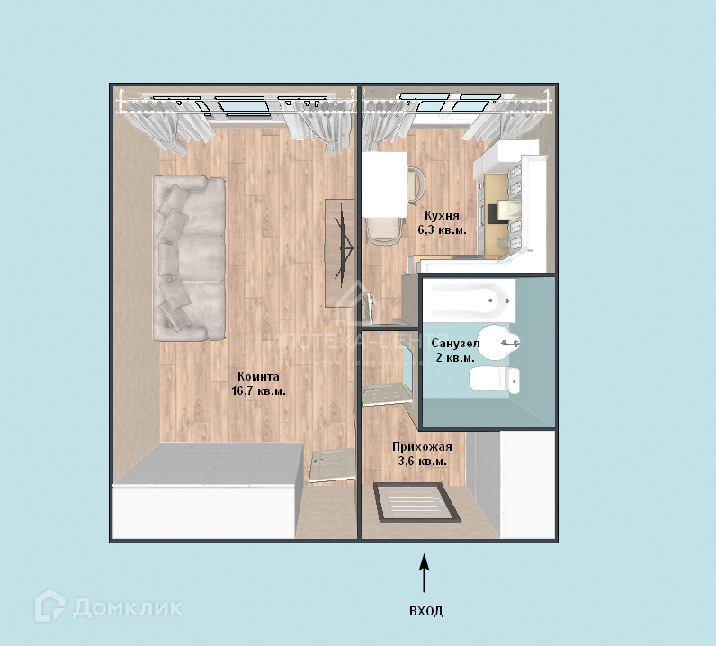 Общая площадь 30.3 м2
