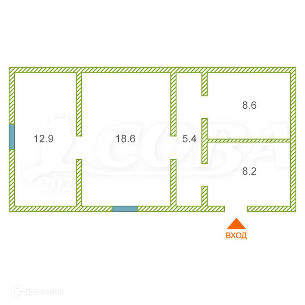 Общая площадь 53.7 м2