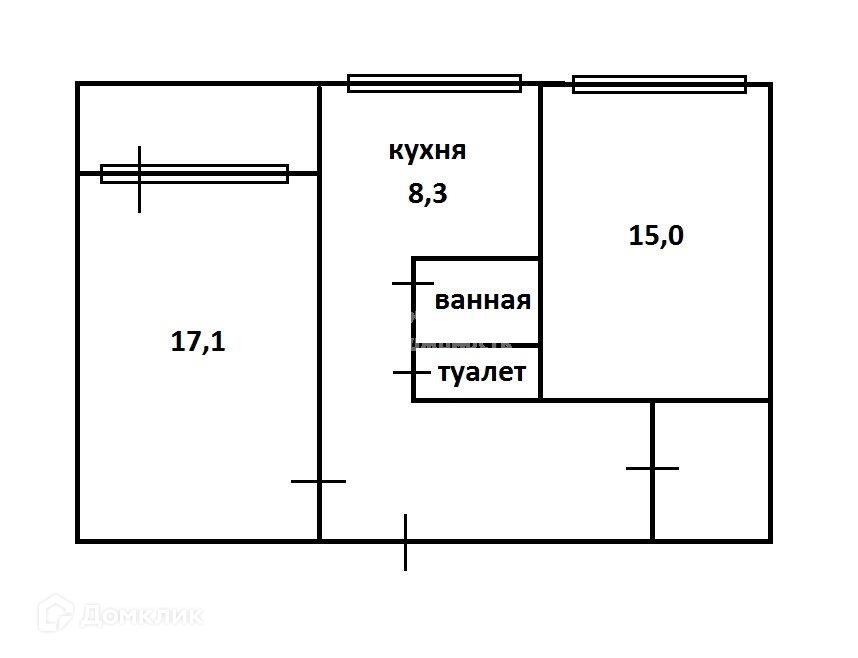Жилая площадь 17.1 м2