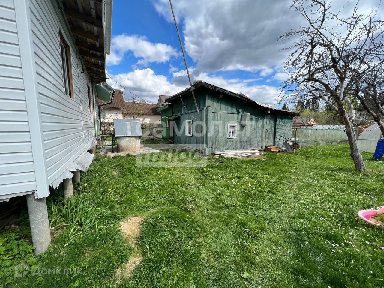 - Пол-дома в деревне с отдельным входом и участком 8 соток. Бревенчатый теплый дом, внешне отделан сайдингом, внутренняя отделка - вагонка.