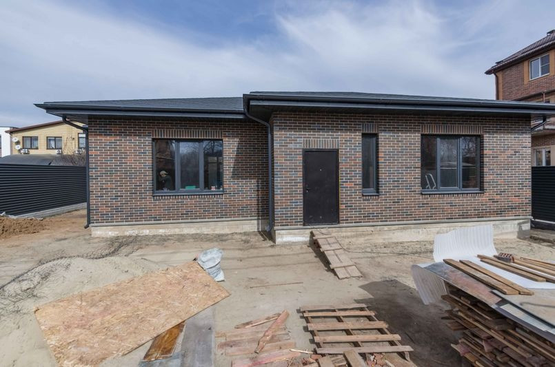 Дом строился под заказ дорого и богато , но у клиента изменилась жизненная ситуация , поэтому дом продаем. Дом полностью из кирпича (толщина стен 2 кирпича!) , 140 м2 в один этаж из модного, красивого кирпича. Участок 6 сот . В доме есть большая прихожая , кухня-зал 50 м2 ! три комнаты , сан.узел , котельная с выходом во двор и с подвалом . Окна - тройной пакет . Провода электрические , перемычки , фундамент , утеплитель на крыше - все с запасом прочности! Хорошие подъездные пути . В цену входит готовность дома " под чистовую отделку" (стяжка, штукатурка, шпаклевка, все коммуникации, разводка воды и электрики, радиаторы , котел , забор, ворота , калитка и др). Есть место для парковки машин и для отдыха.