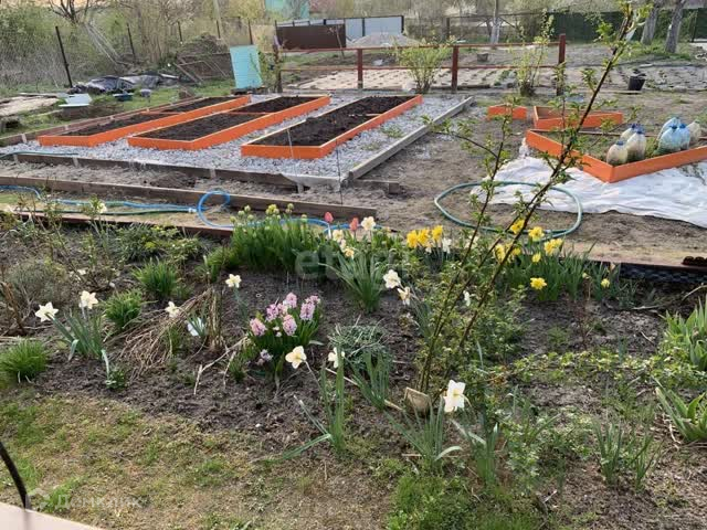 На участке большая стеклянная теплица, зона барбекю, хозяйственные постройки, две беседки для отдыха. Плодовые и декоративные деревья, кустарники, многолетние цветущие растения. Два колодца: один для водоснабжения дома, второй используется для полива. Участок огорожен. На участке есть 2 парковочных места, два въезда.