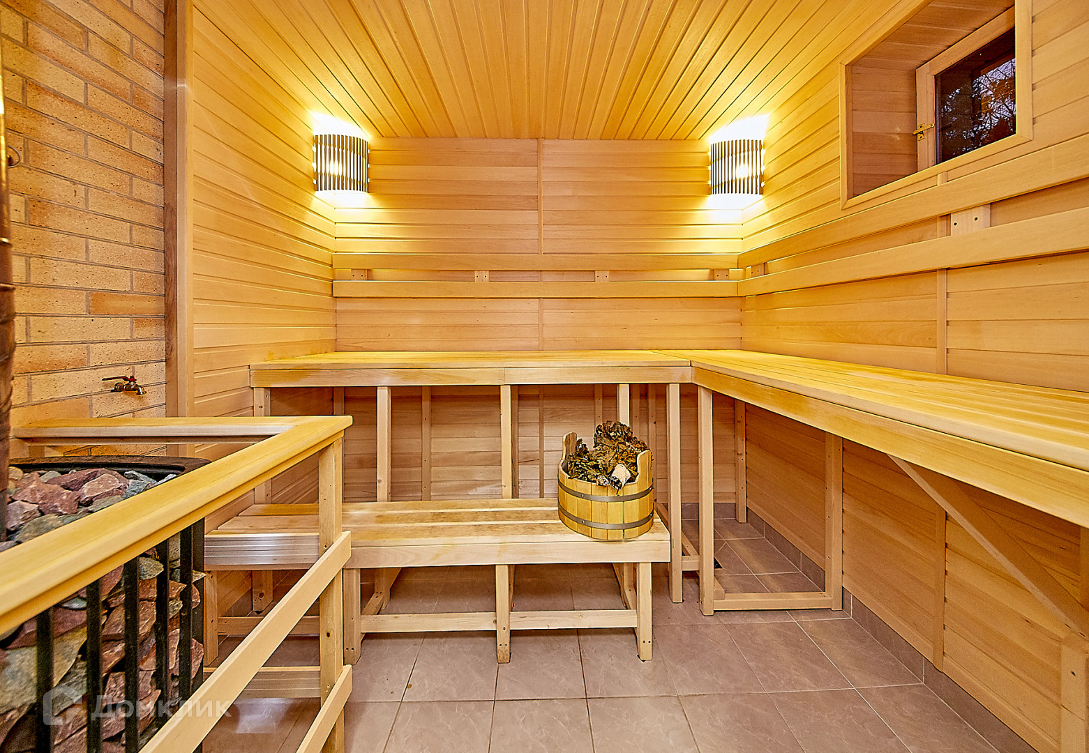 На участке выстроен отдельно стоящий гостевой дом с гаражом, сауной и гостевой спальней.