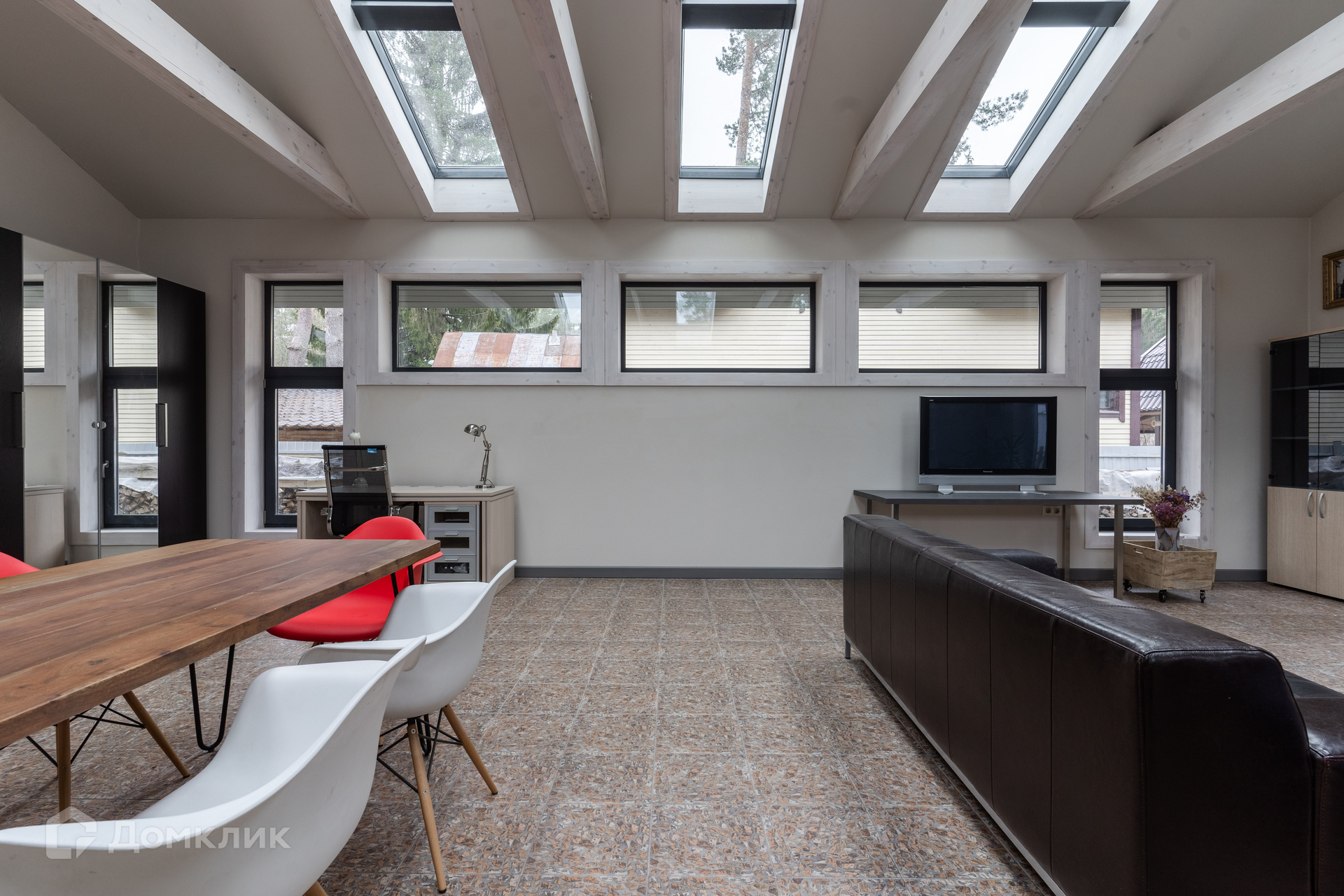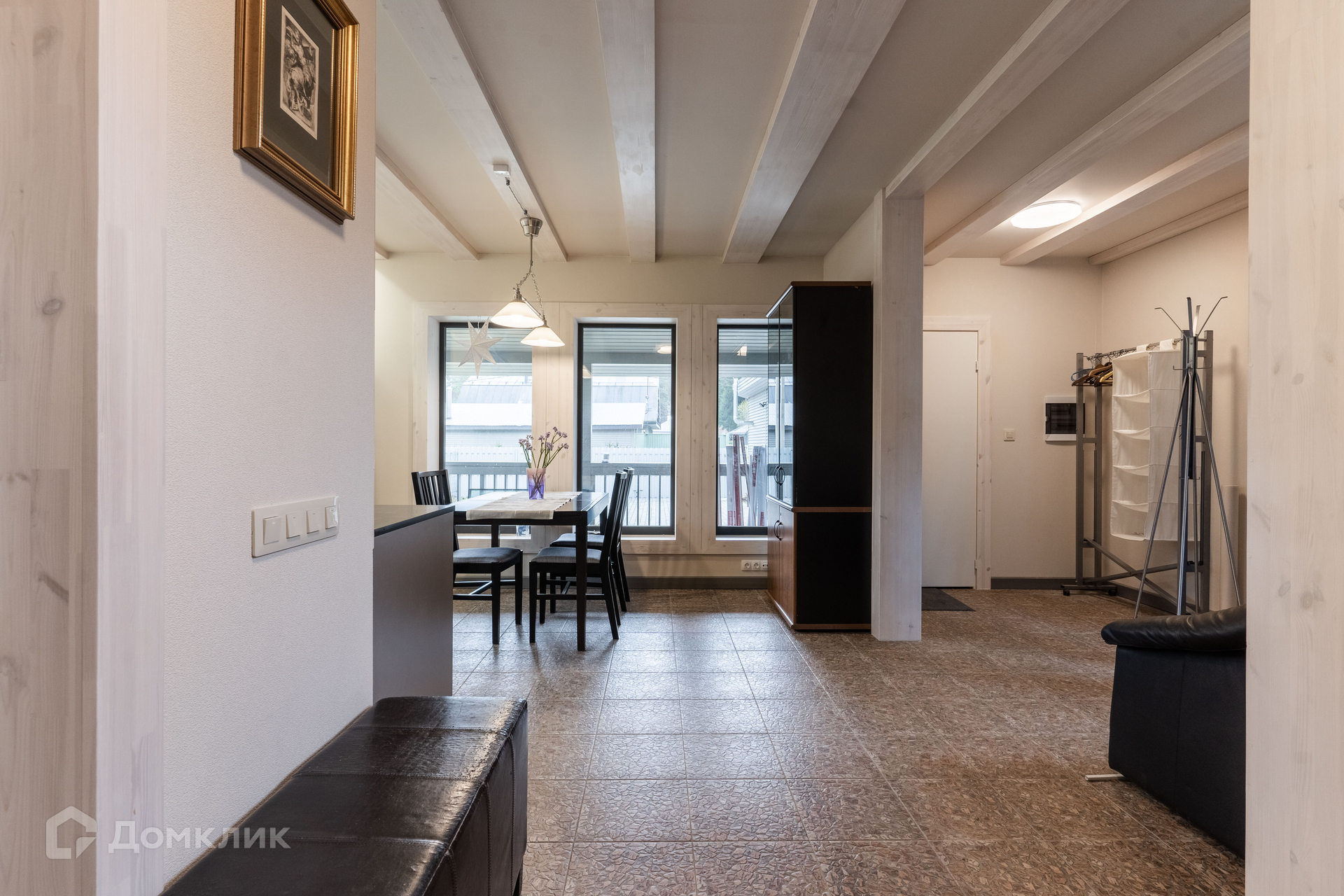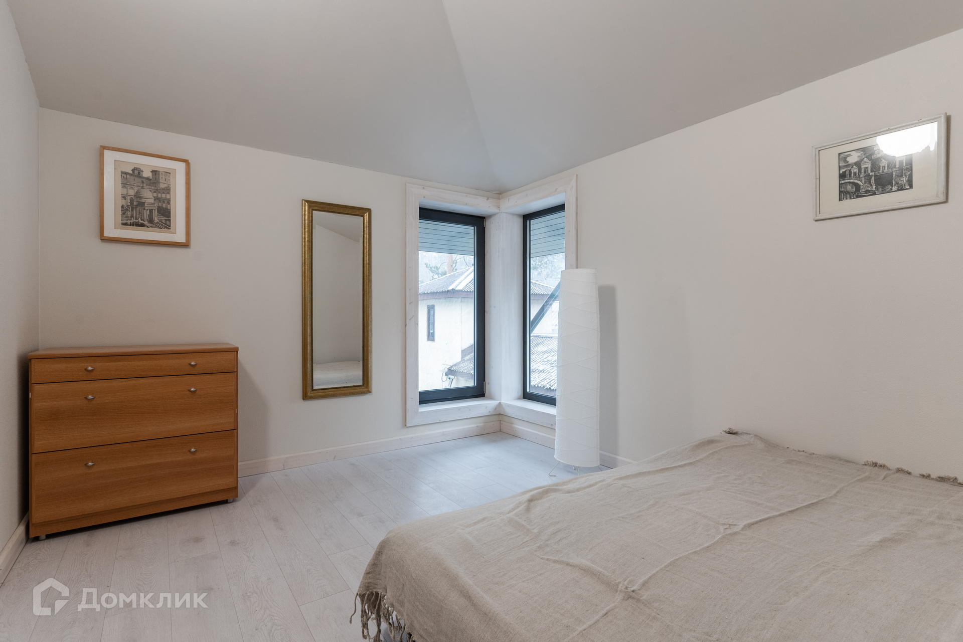 Дом 2018 года постройки, в отличном состоянии. Планировка дома: 1 уровень -- крытая терраса, кухня, гостевой санузел и большой зал open-space, который может использоваться как гостиная, столовая или кабинет-мастерская; 2 уровень -- две небольшие спальни и совмещенная ванная комната. Гостиная имеет второй выход на улицу и всегда залита естественным светом благодаря большому количеству окон и панорамному остеклению крыши. Кухня с посудомоечной машиной. Есть подсобный угол под лестницей для хранения. Дом ранее не сдавался в аренду. Теплые полы по всей площади. Магистральный газ.