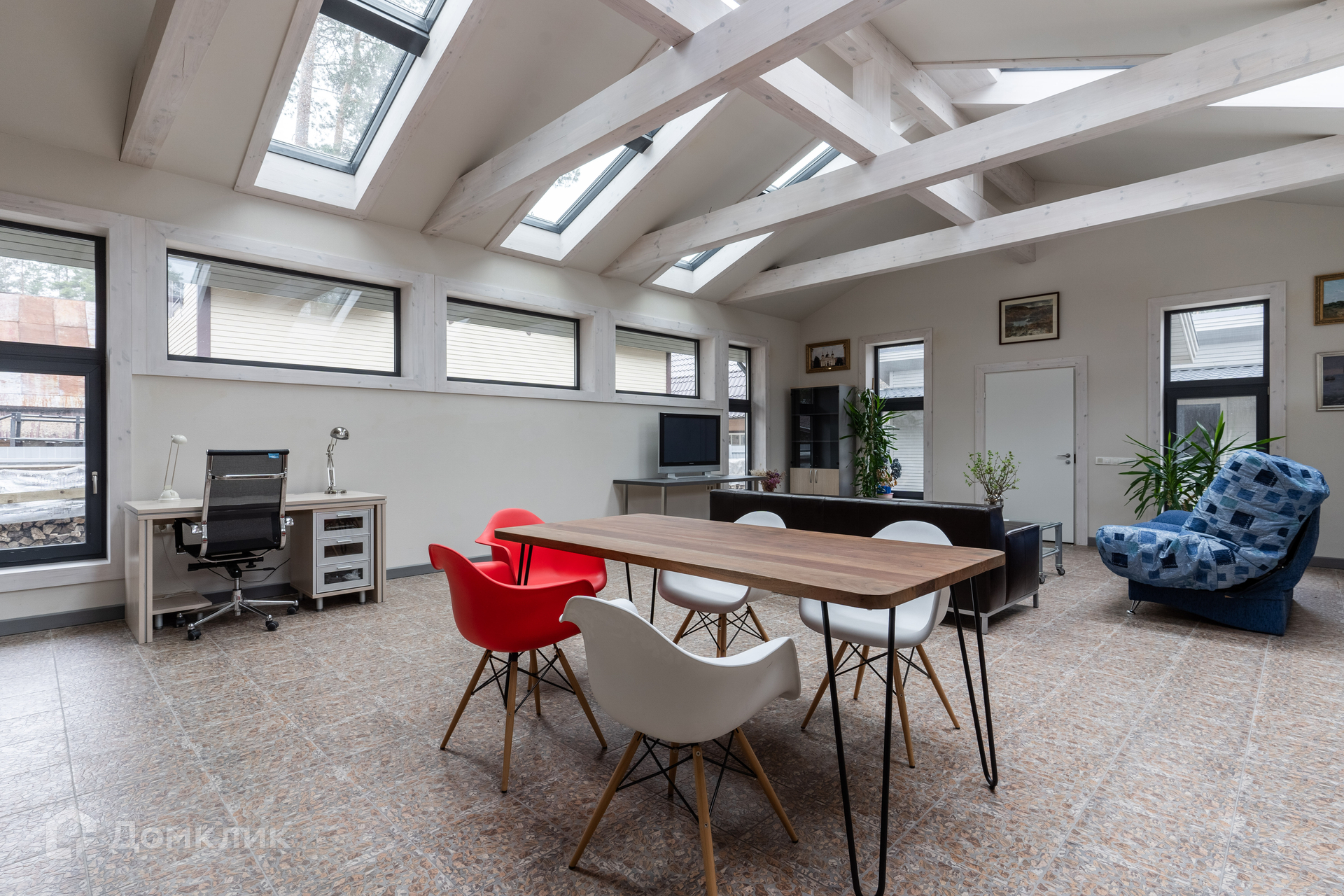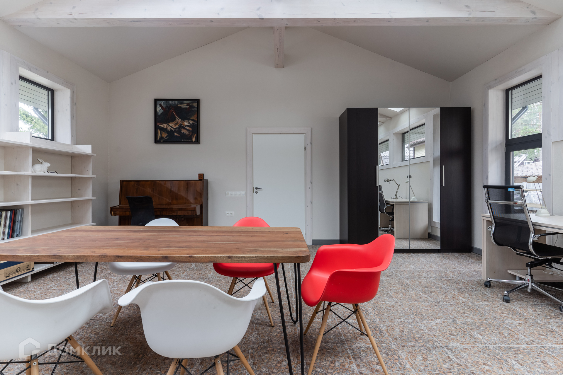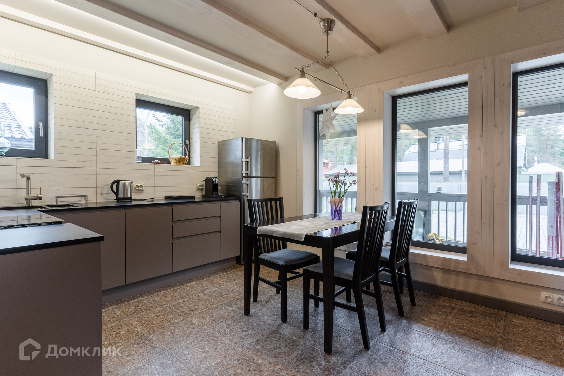 Дом 2018 года постройки, в отличном состоянии. Планировка дома: 1 уровень -- крытая терраса, кухня, гостевой санузел и большой зал open-space, который может использоваться как гостиная, столовая или кабинет-мастерская; 2 уровень -- две небольшие спальни и совмещенная ванная комната. Гостиная имеет второй выход на улицу и всегда залита естественным светом благодаря большому количеству окон и панорамному остеклению крыши. Кухня с посудомоечной машиной. Есть подсобный угол под лестницей для хранения. Дом ранее не сдавался в аренду. Теплые полы по всей площади. Магистральный газ.