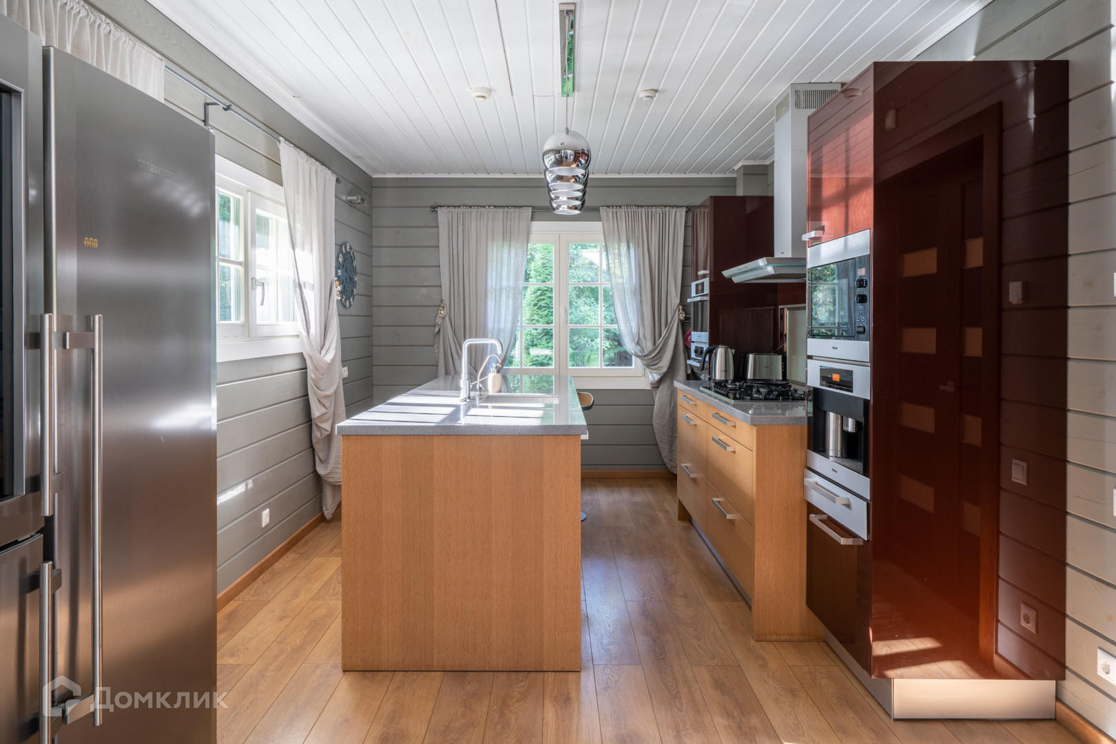 Вы будете приятно удивлены качеством внутренней отделки этого дома. Гостиная с камином, столовая, кухня с мебелью и техникой от немецкой фирмы "Miele", спальные комнаты с дорогой итальянской мебелью, детская комната, кабинет, ванные комнаты - все продумано до мелочей.