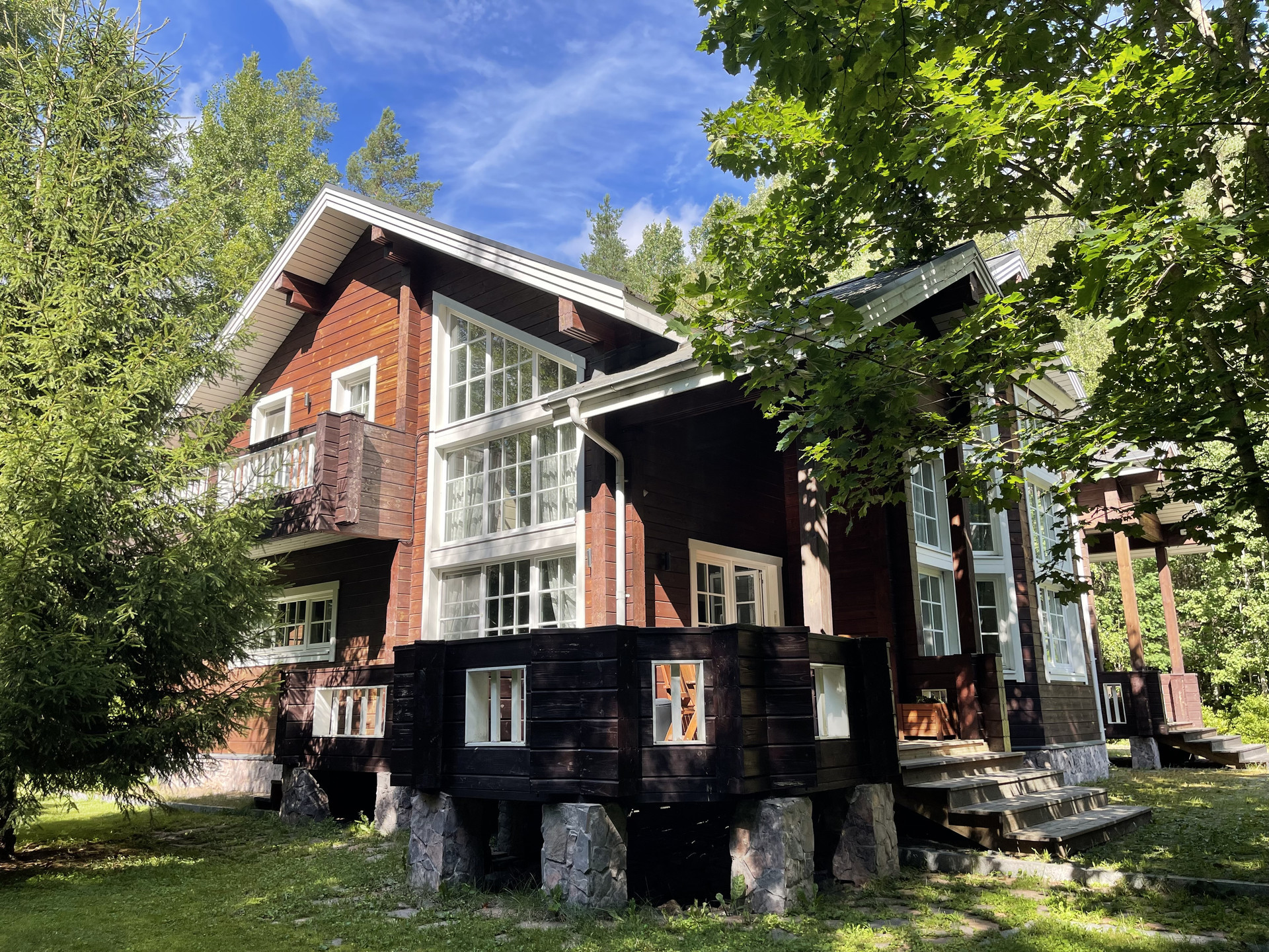 Финский шикарный коттедж премиум класса Хонка-Аятонта с двумя балконами на эксклюзивном , без соседей, лесном участке 32 сотки с ручьем . На участке выполнен ландшафтный дизайн. Отделка дома высококачественными материалами. Охранная система с видеонаблюдением за участком и домом. 4 спальных комнаты, гардеробная,кабинет, гостевая комната, детская комната, тех.помещение, прихожая. терраса-40 м..В каждой комнате климат-контроль. Домашний кинотеатр. Две ванные комнаты 1-16 кв.м и 2-6 кв.м.Высокоскоростной интернет.Вода-скважина с фильтрами тонкой очистки.Детская площадка.Зона барбекю с газовым грилем.