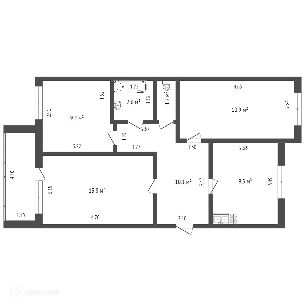 Общая площадь 57.1 м2