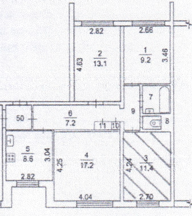 Просторная коммунальная квартира  73.6 кв.м.в хорошем состоянии в доме 1994 года постройки. Просторная кухня 8.6. кв.м.