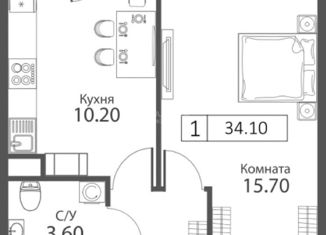 Однокомнатная квартира на продажу, 34.1 м2