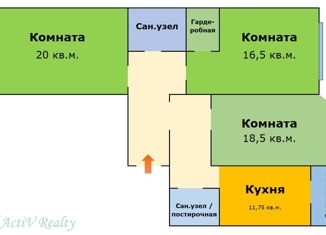 Продается трехкомнатная квартира, 93 м2, Лазурная улица, 14