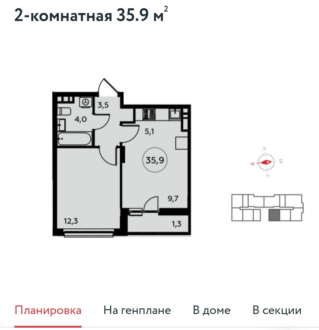 Общая площадь 35.9 м2