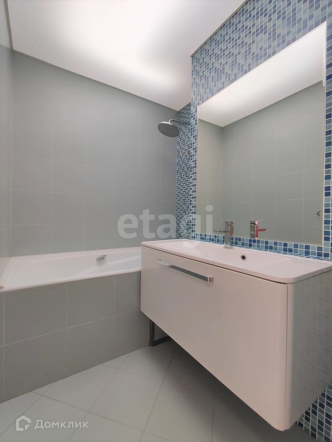 В ванной термостатный смеситель, поддерживающий температуру при любых неполадках и тропический душ.