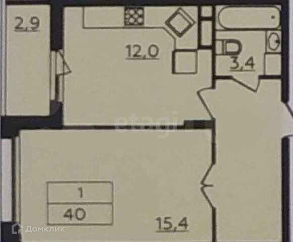 1-комнатная квартира, 39.8 м2, этаж 6 / 15, на продажу в посёлке Коммунарка, улица Потаповская Роща, 24к3