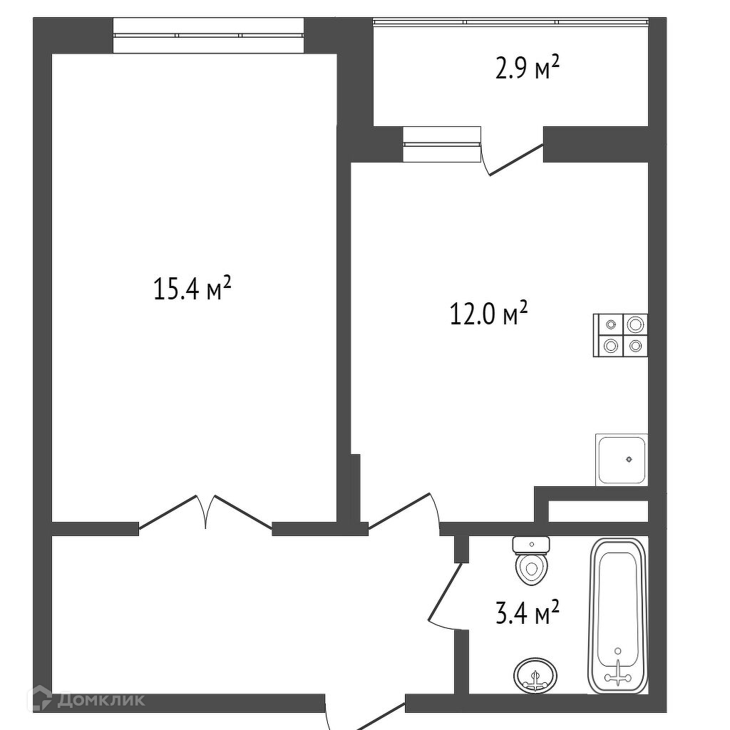 Общая площадь 39.8 м2