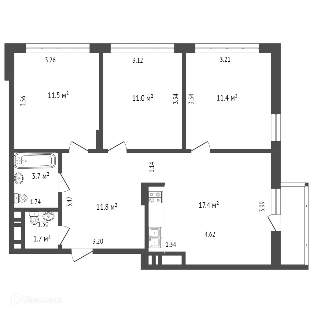 ЕВРОФОРМАТ: большая кухня-гостиная 17,4 м2, 3 изолированные комнаты. Черновая отделка. Удачная функциональная планировка для реализации своего дизайн-проекта. Большая прихожая для оформления гардеробной. 2 совмещенных санузла. Окна на 2 стороны света: З-С. В квартире очень много света. Полупанорамное остекление. Высота окна-2,20 м. Высота потолка-3 м. Последний высокий этаж с отличными видовыми характеристиками, перед окнами ничего нет. Последний этаж, где над Вами никто не топает ногами и для дополнительной безопасности от заливов есть технический этаж.