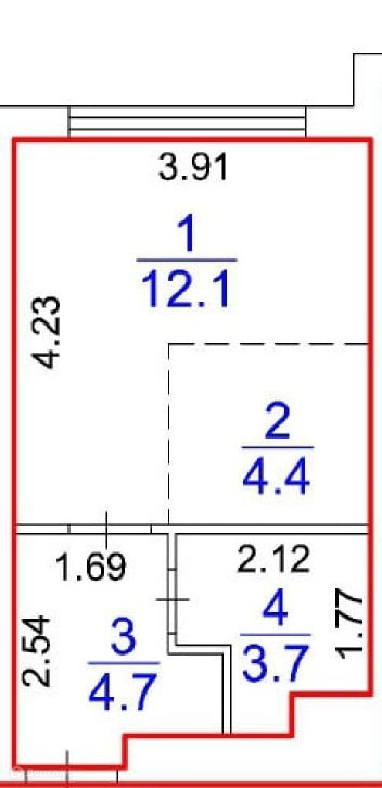 Общая площадь 24.9 м2
