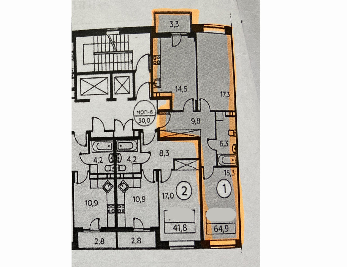 Общая площадь 64.2 м2
