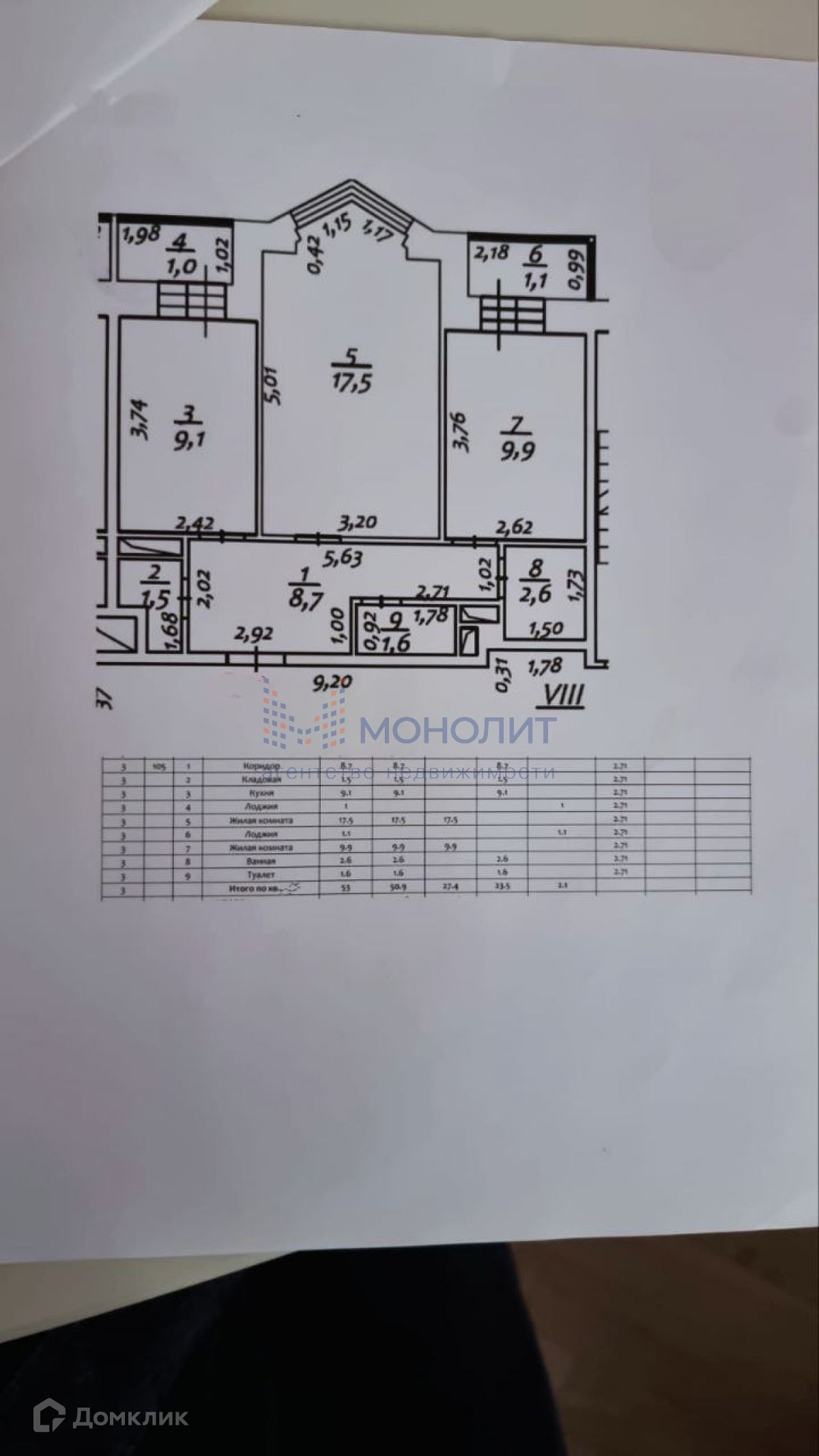 Общая площадь 50.7 м2