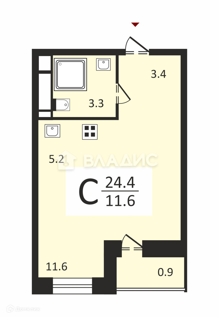Общая площадь 25 м2