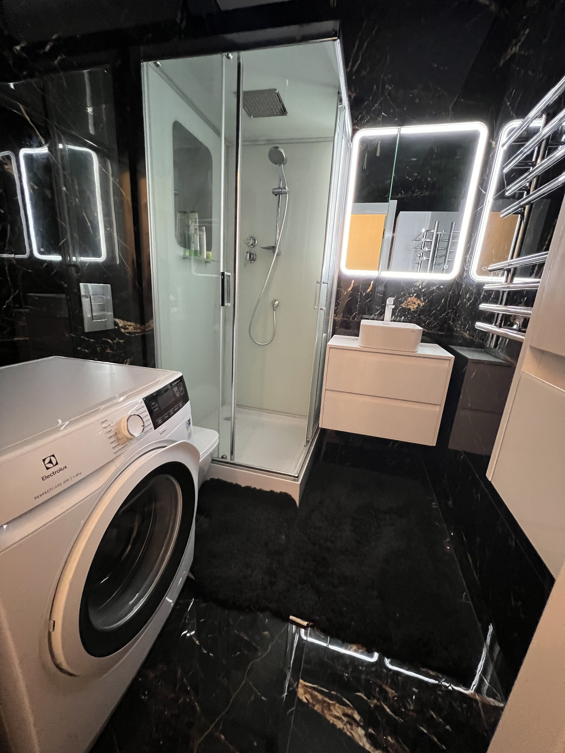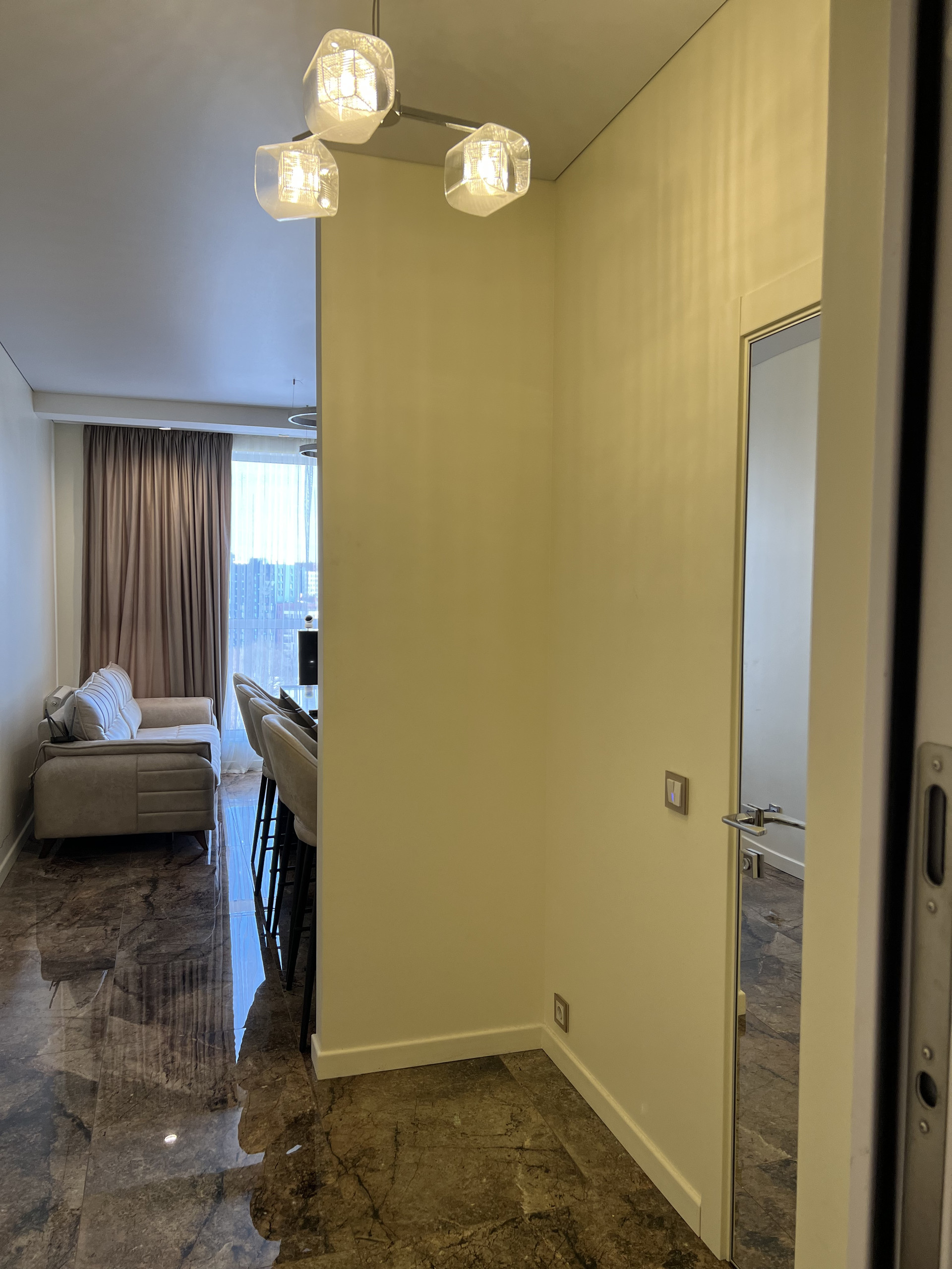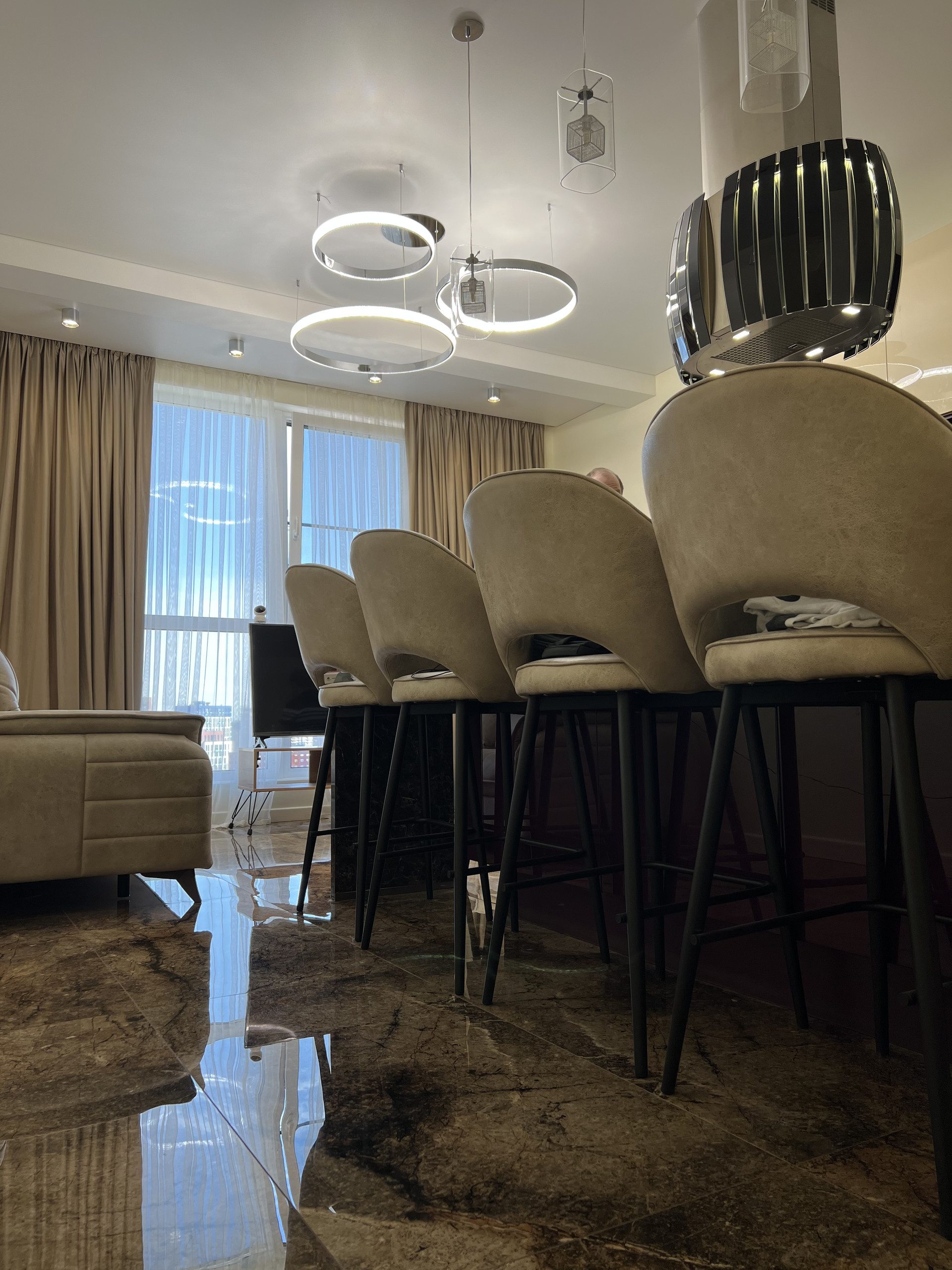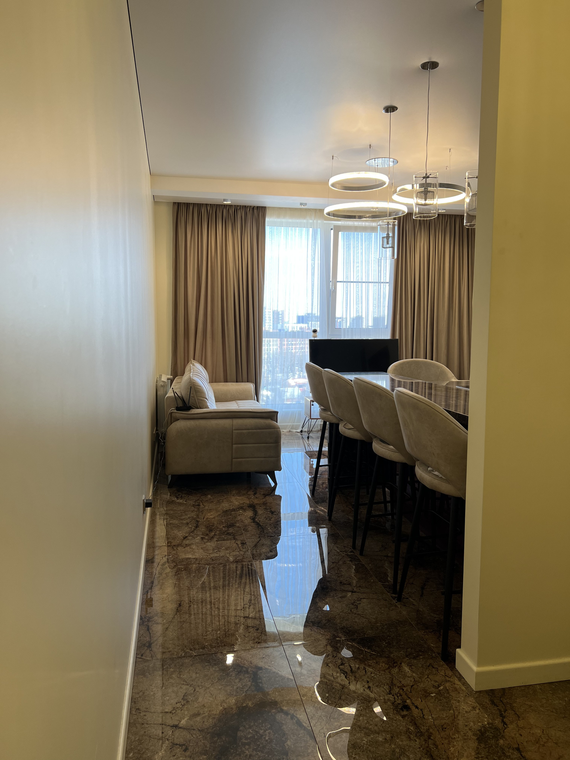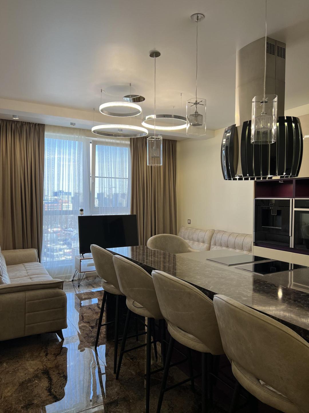 Выполнен дорогой дизайнерский ремонт из премиальных материалов.