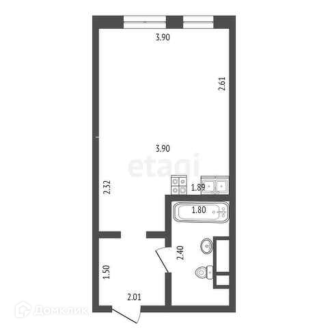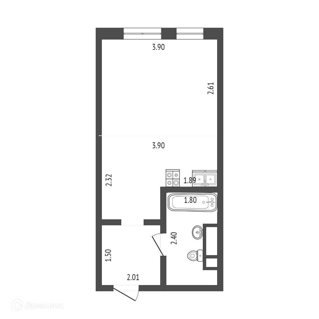 Общая площадь 24.4 м2