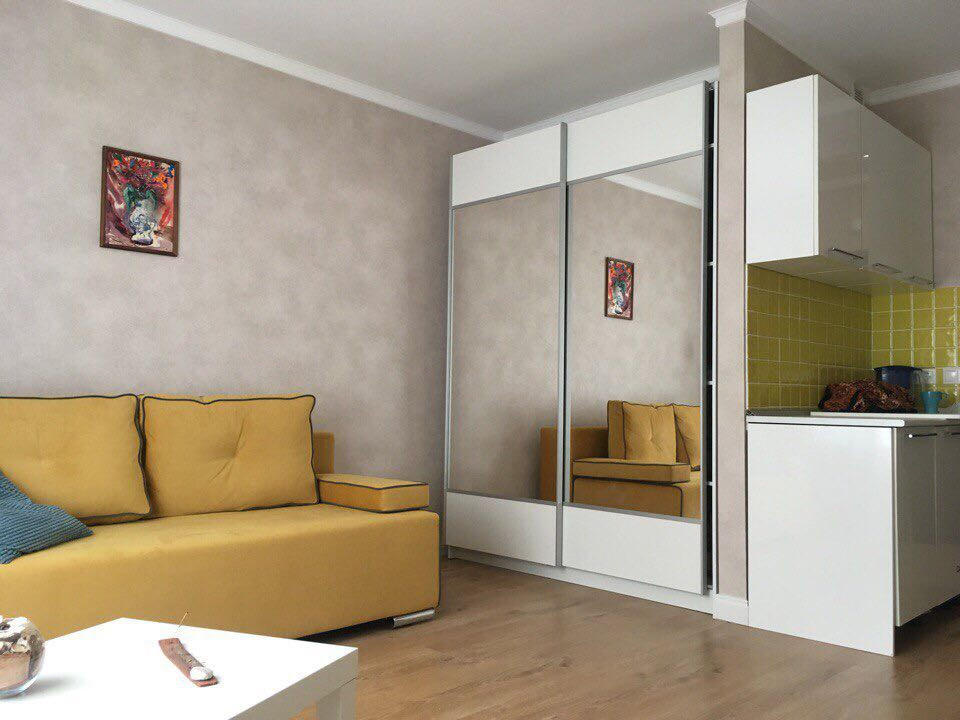 Студия в ЖК Новая Звезда. Дом Бизнес класса. Огороженная территория, на въезде в комплекс КПП, двор без машин. Входная группа с ОХРАНОЙ. Ладшафный дизайн от итальянского архитектора. Квартира светлая и солнечная, уютная, квадратной формы, удобна для расстановки мебели. Зона кухни отдельно от жилой зоны. Большой встроеный шкаф, кухня делалась на заказ. Ремонта не трубует. Без обременений,  Мат. капитала, полная стоимость.Один взрослый собственник.