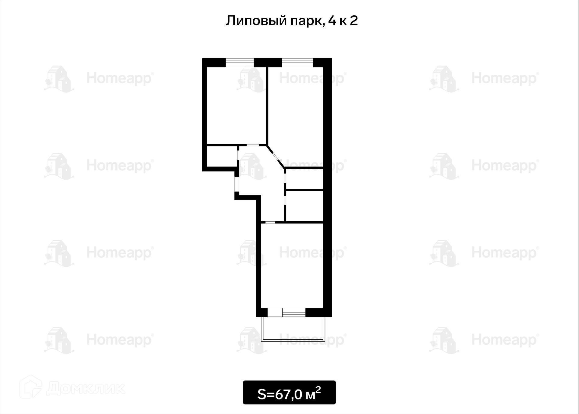 Общая площадь 67.4 м2