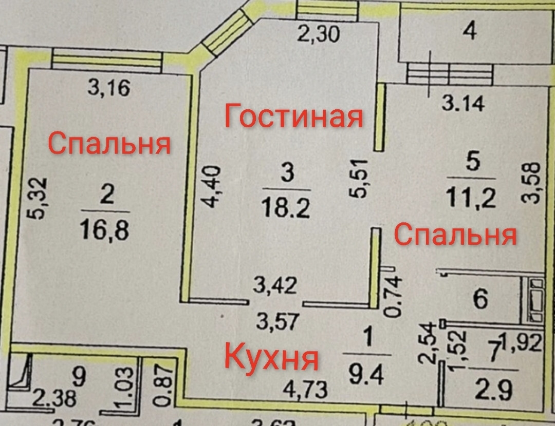 Жилая площадь 35 м2